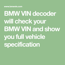BMW VIN decoder BMW VIN decoder All cars are marked with a serial number known as a Vehicle Identification Number VIN. Here are the most popular reasons to check your BMWs VIN. A free BMW VIN decoder allows you to lookup options model year engine transmission and specifications.